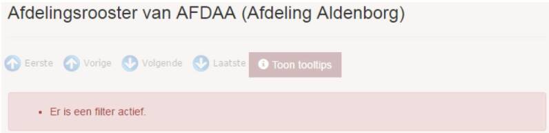 Als u ervoor kiest om in het rooster te filteren op alleen eigen diensten van de opgevraagde afdeling, de opgevraagde functie of het opgevraagde dienstverband, dan wordt er boven het afdelingsrooster aangegeven dat er een filter actief is.